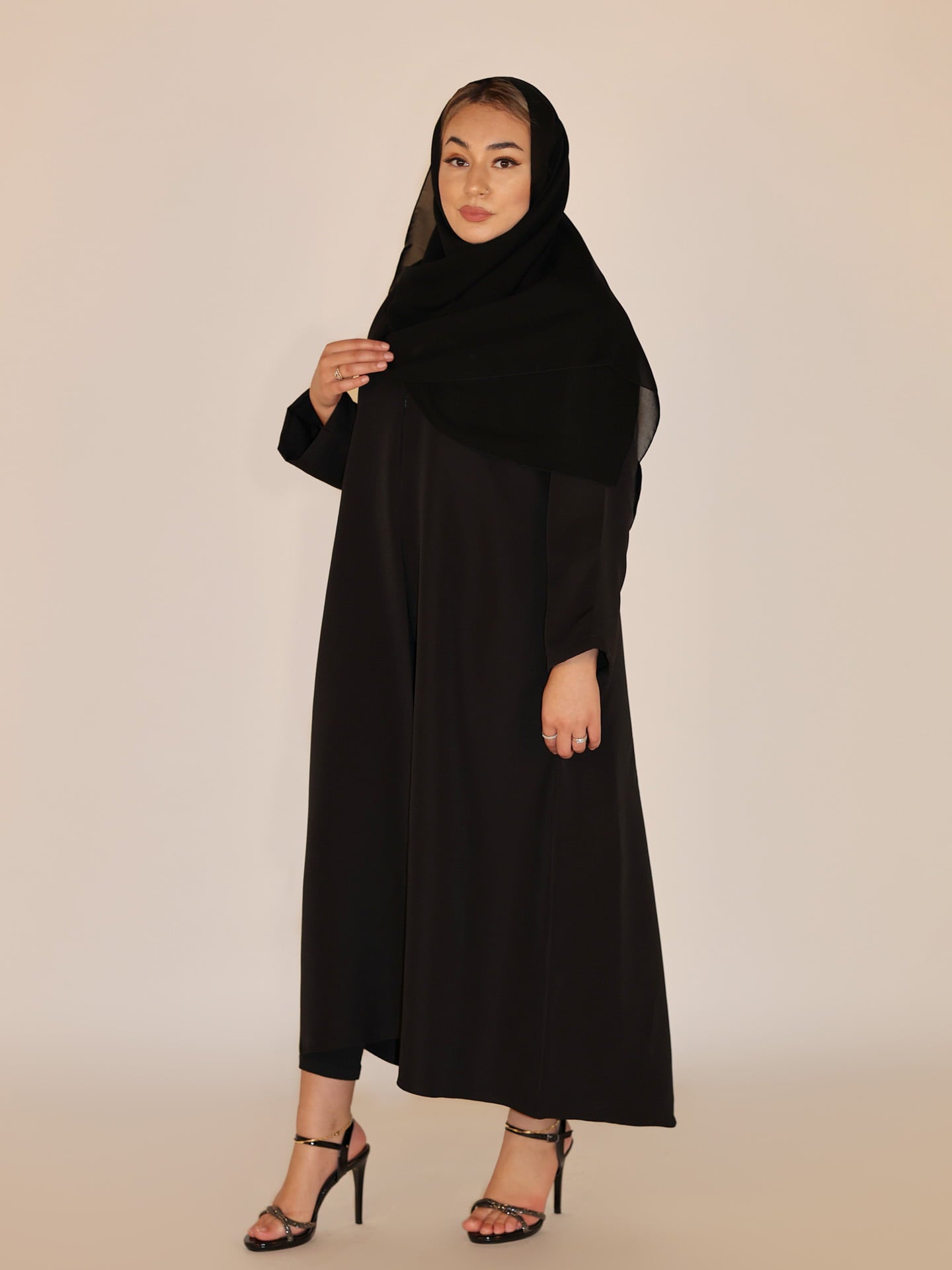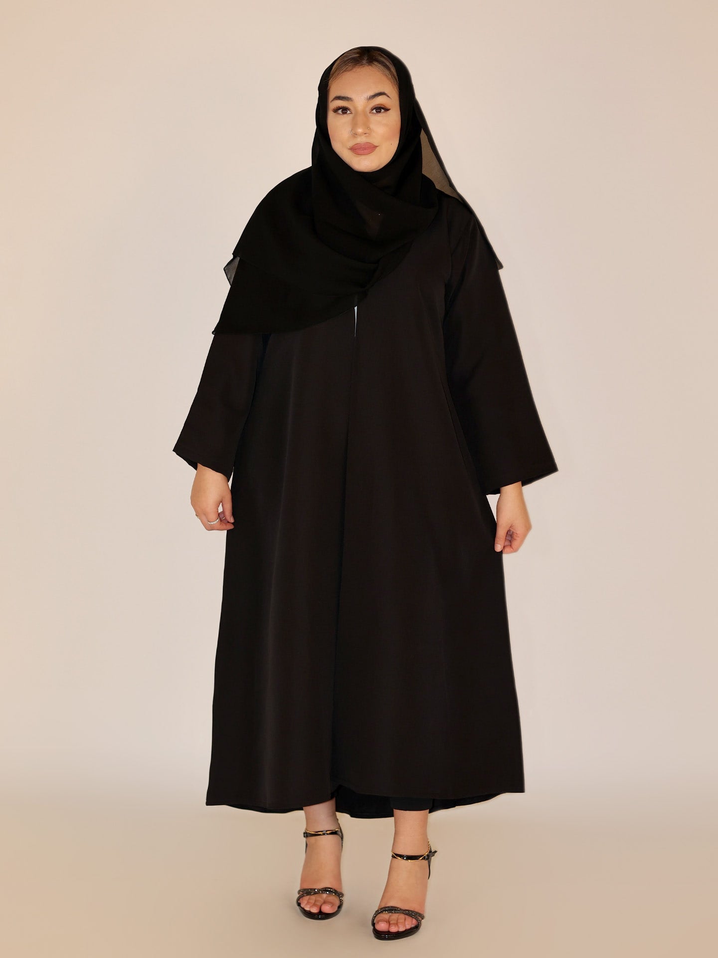Discover elegance in our black belted abaya – a sophisticated, coat-style design crafted for versatile wear. This abaya features a front-open closure, allowing you to wear it open or closed for any occasion. The adjustable belt enhances the fit, giving a flattering, tailored look that’s both comfortable and chic. Made from premium, soft fabric, this piece combines style with durability, perfect for elevating your everyday or special occasion wardrobe.