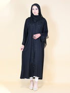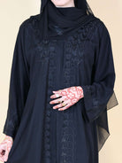 Elevate your modest wardrobe with the exquisite charm of our black leaves embroidered 2-piece abaya set. Designed to exude grace and sophistication, this abaya is adorned with delicate leaf embroidery, adding a subtle yet striking touch of elegance. Crafted from high-quality Nada fabric, it offers a lightweight, flowy, and comfortable fit, perfect for any occasion.
