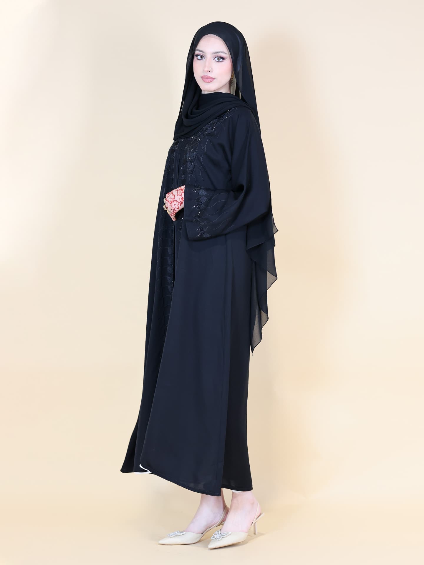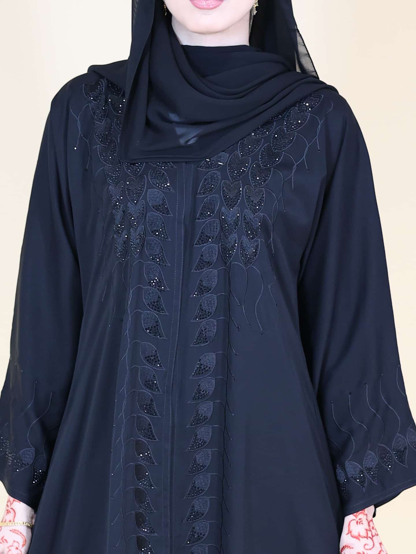 Closed Abaya: A sleek, full-coverage design with intricate leaf embroidery for a timeless look.