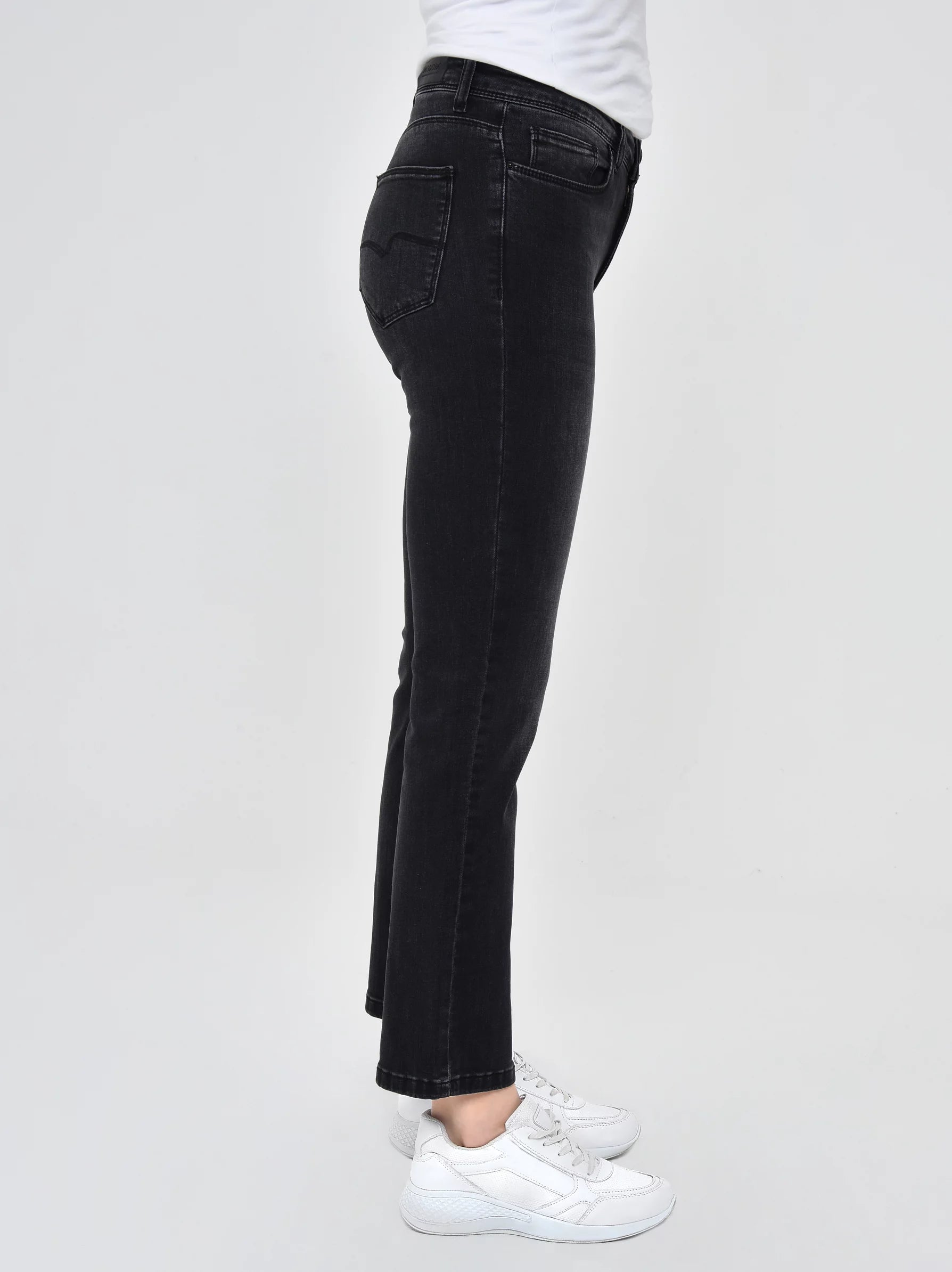 A five-pocket, ankle length jeans in washed denim with mid-waist and flexible fabric to increase your mobility. Detailed with slim straight legs, zip and button closure, belt hoops and a soft crinkle effect on thighs. This model will be your wardrobe’s essential with comfortable and in-style design. Pair it with our lovely selections of topwears.