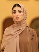 Our beautiful brown crepe chiffon scarf is perfect for any occasion! Featuring a lightweight and airy crepe chiffon fabric, the hijab offers fashionable coverage while providing breathability and comfort. Its slightly sheer design creates an elegant drape when wrapped around the head. Additionally, this hijab features a beautiful finish along the edges that adds a touch of sophistication. The brown chiffon scarf is also easy to tie and style to match any outfit. Bring a dash of grace to your wardrobe with this stunning crepe chiffon scarf!