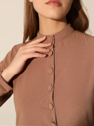 effect. This long sleeve brown maxi dress is a stunning timeless piece with simple elegant details all over. Pair it with our lovely choice of heels to complete your occasion look.