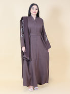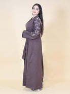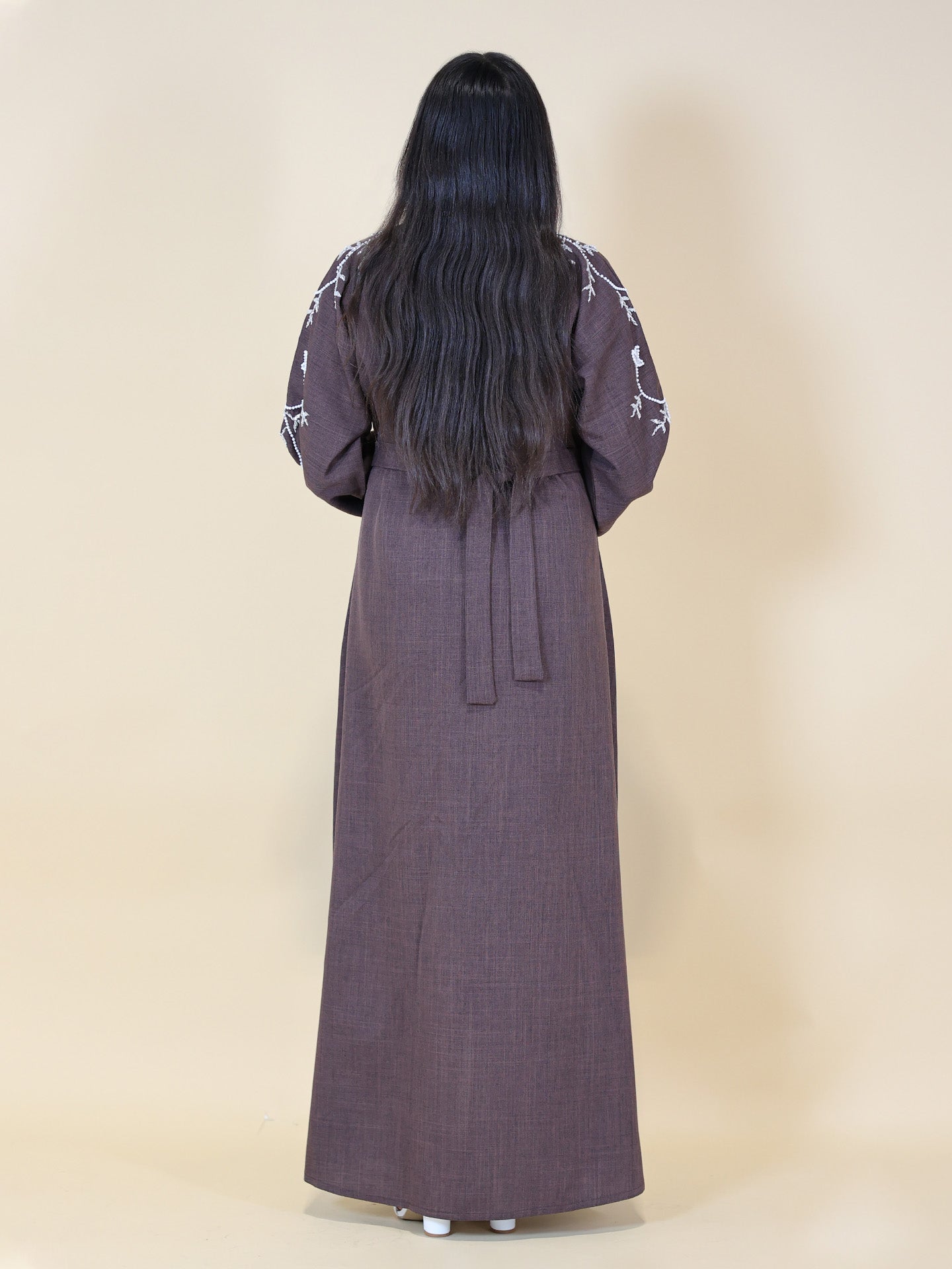 Chocolate Brown Pearl Embellished 2 Piece Abaya Set