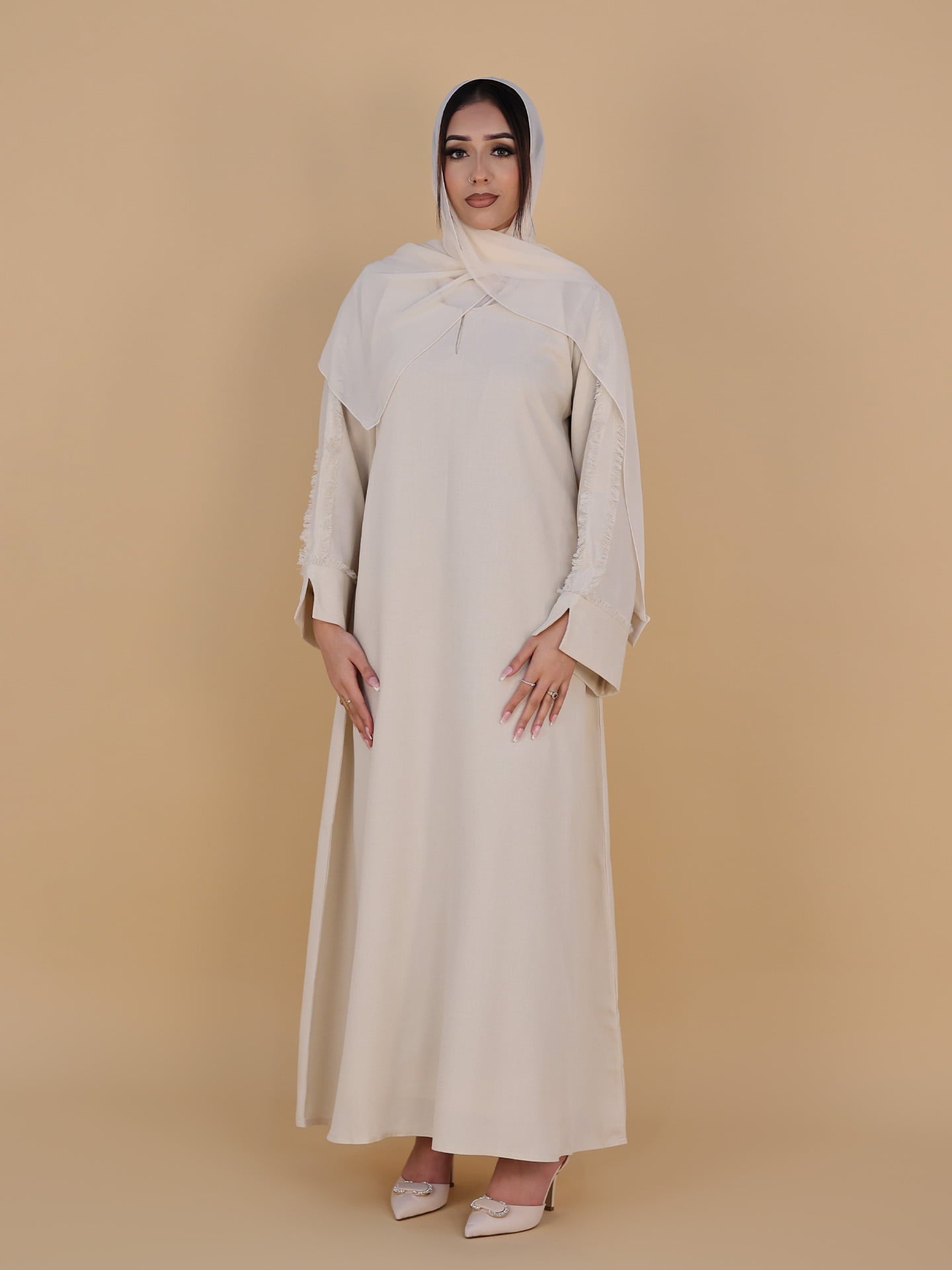 Embrace elegance with our Cream Closed Abaya — a perfect blend of sophistication and timeless style. Crafted from high-quality, lightweight fabric, this abaya offers a soft, luxurious feel, ideal for daily wear and special occasions. Its classic closed-front design ensures full coverage, while the flowing cut provides a comfortable and graceful silhouette. The warm cream hue adds a touch of understated glamour, easily pairing with any accessory or hijab for a modest and effortlessly chic look.