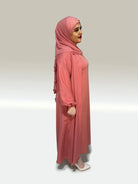 The elegant Dusty Pink Front Open Abaya with Inner, a luxurious ensemble crafted by Nada Fabrics to elevate your modest wardrobe with grace and sophistication. This exquisite two-piece set includes everything you need for a complete and stylish look, from the abaya itself to the coordinating scarf, belt, and inner garment.