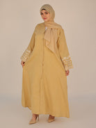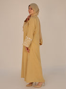 Elegant and effortlessly stylish, our mustard embroidered sleeve 2-piece abaya set brings a touch of sophistication to your wardrobe. This timeless set features a front-open closed abaya design, allowing versatility in styling for both casual and formal occasions. The delicate embroidery on the sleeves adds a refined accent, blending traditional craftsmanship with modern elegance. Perfect for those who appreciate a chic, modest look, this abaya set offers comfort and grace in one stunning ensemble.