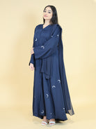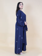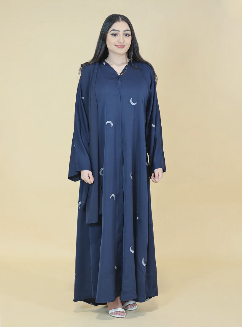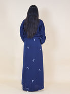 Navy Blue Moon Embroidered 2 Piece Abaya Set