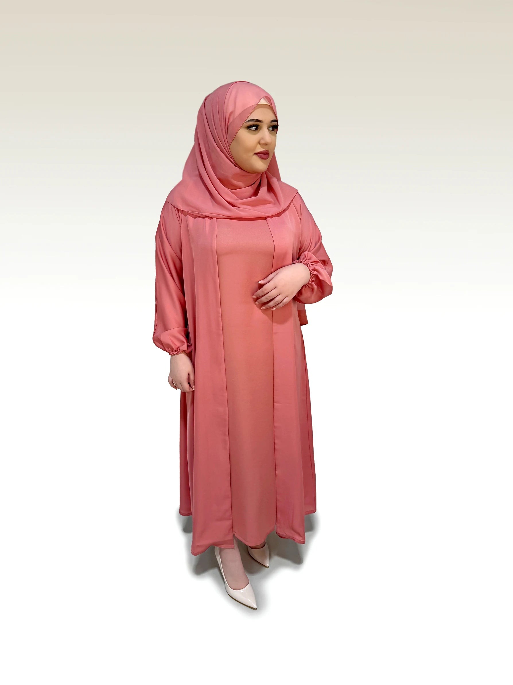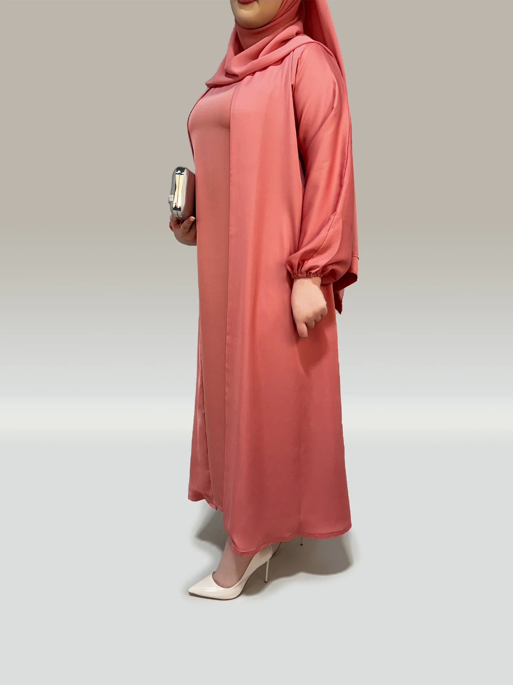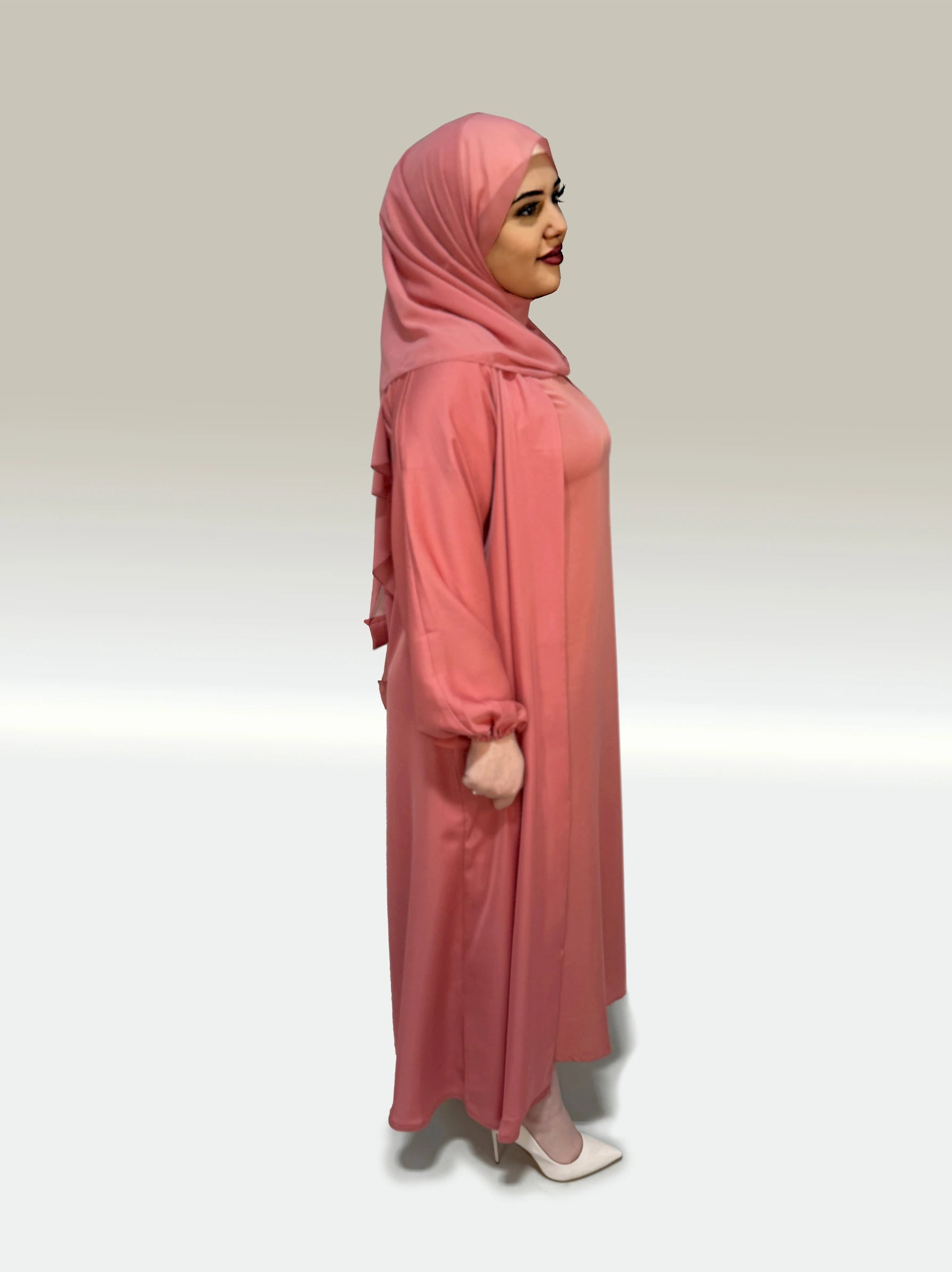 Dusty Pink Front Open Abaya With Inner