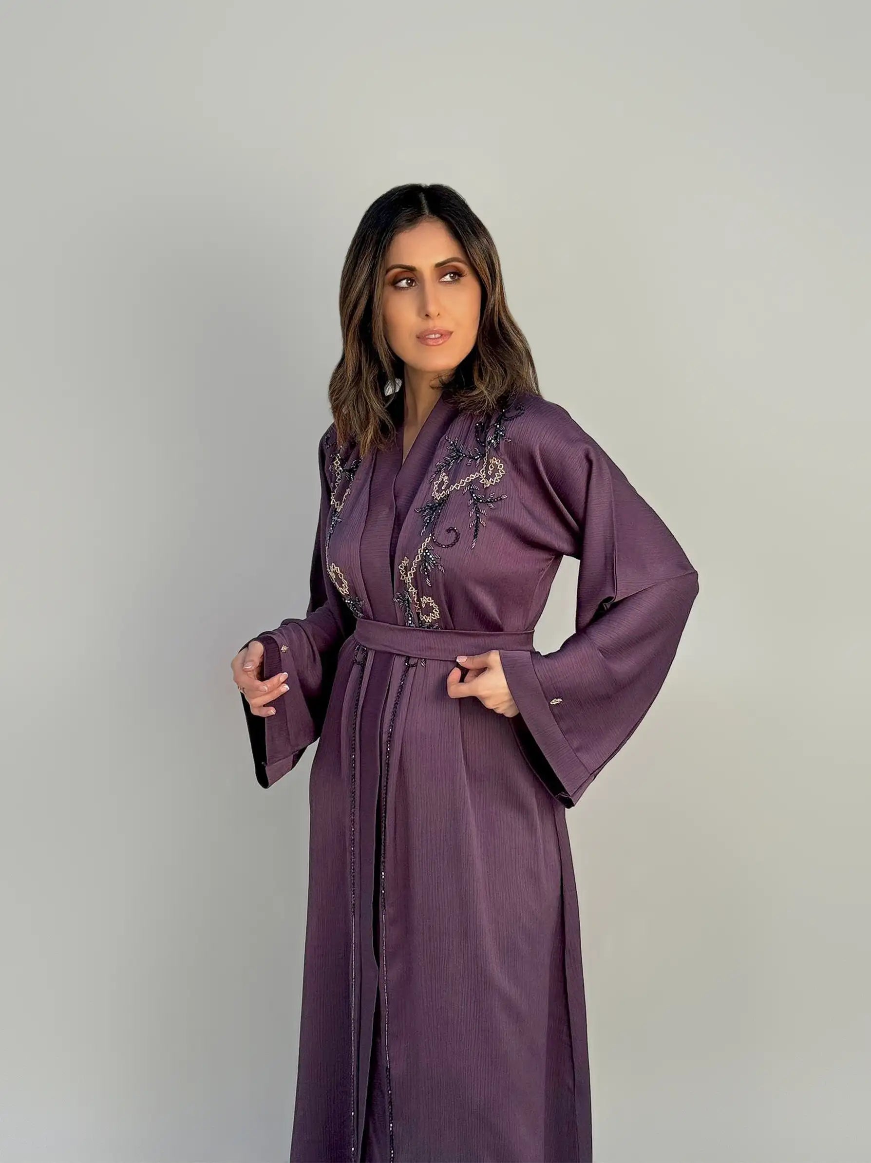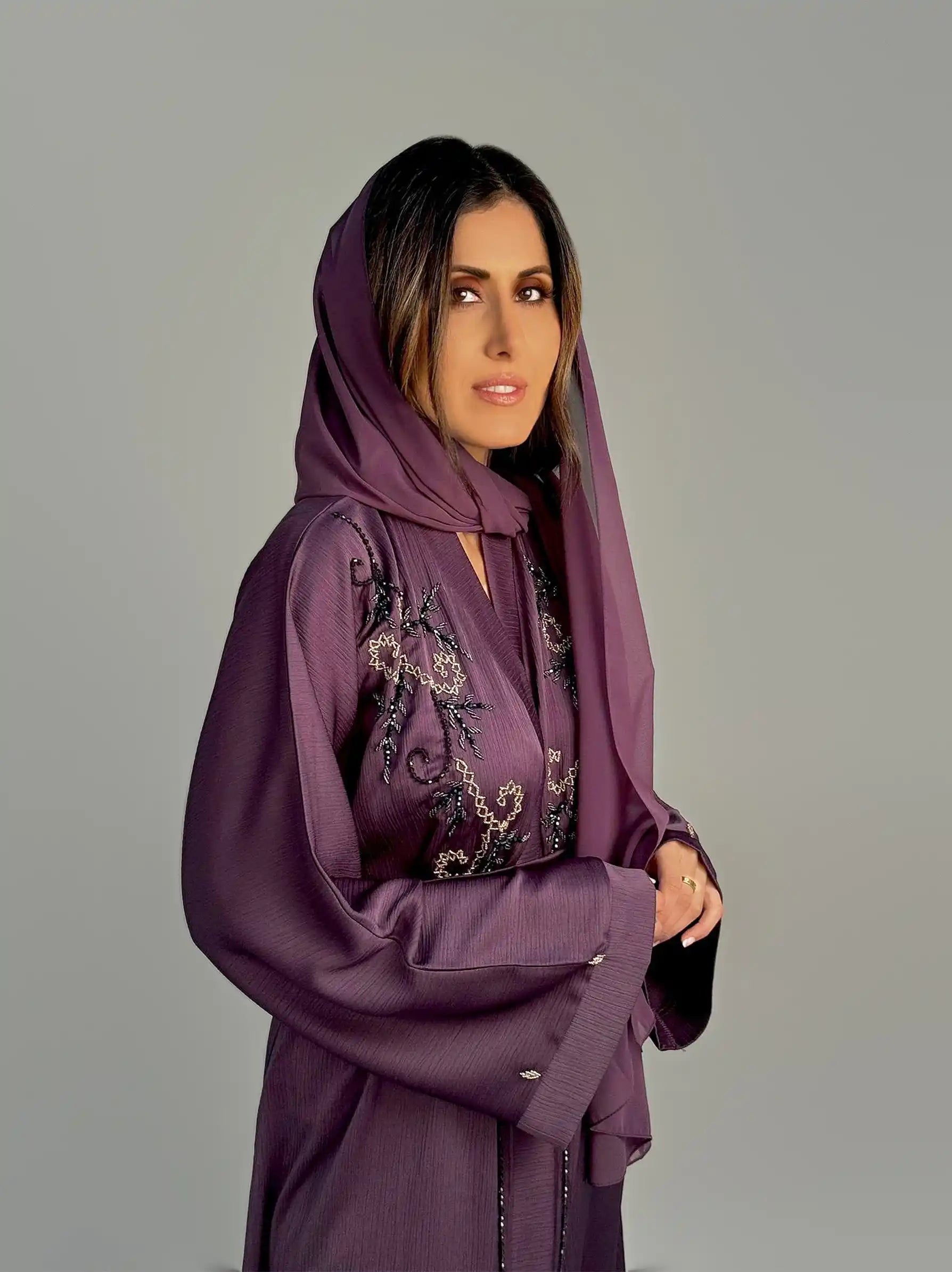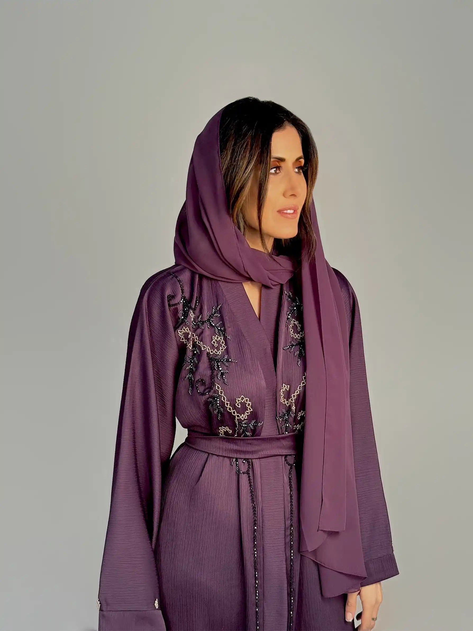 Purple Embellished Abaya 2 Piece Set