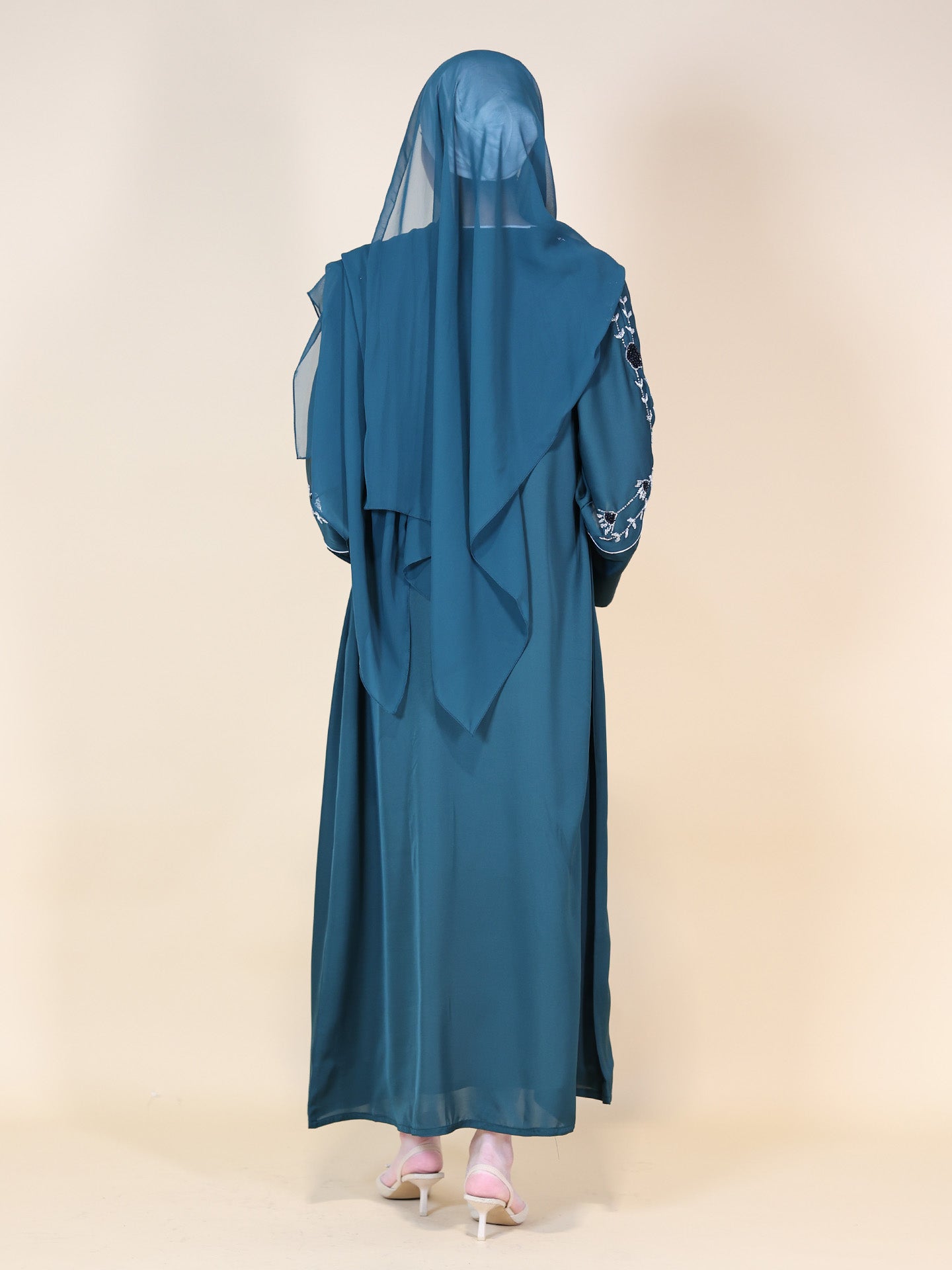 Beige Embellished 3 Piece Abaya Set