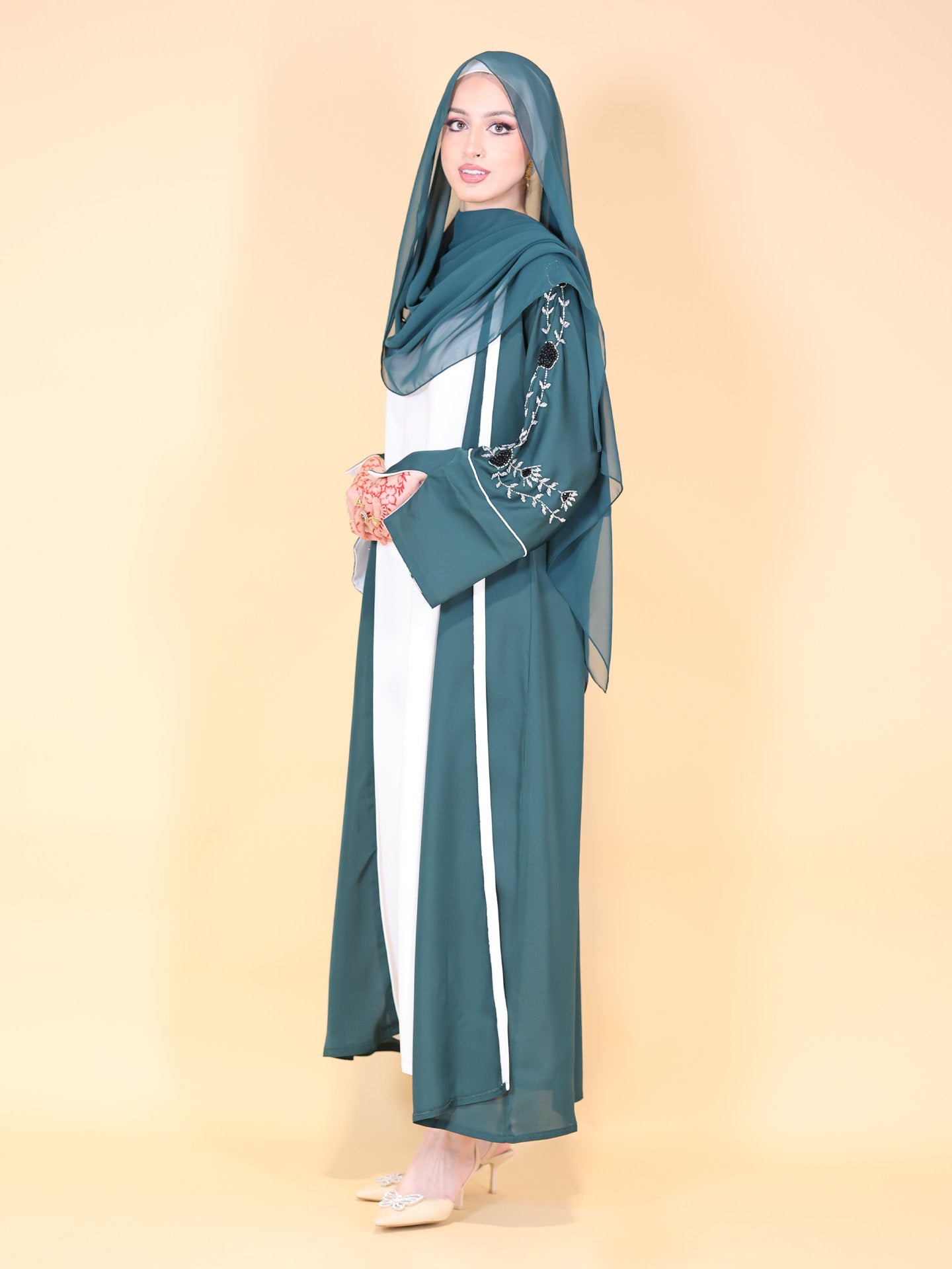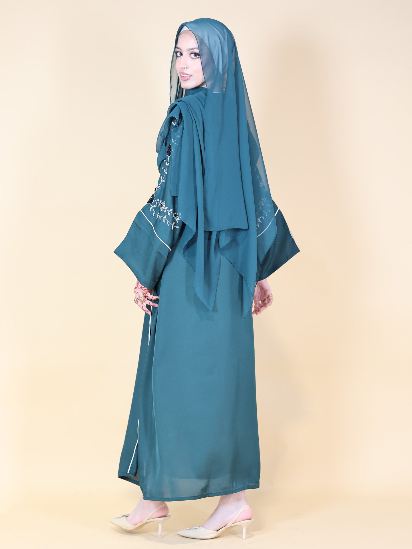Emerald Green Embellished 3 Piece Abaya Set