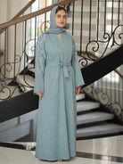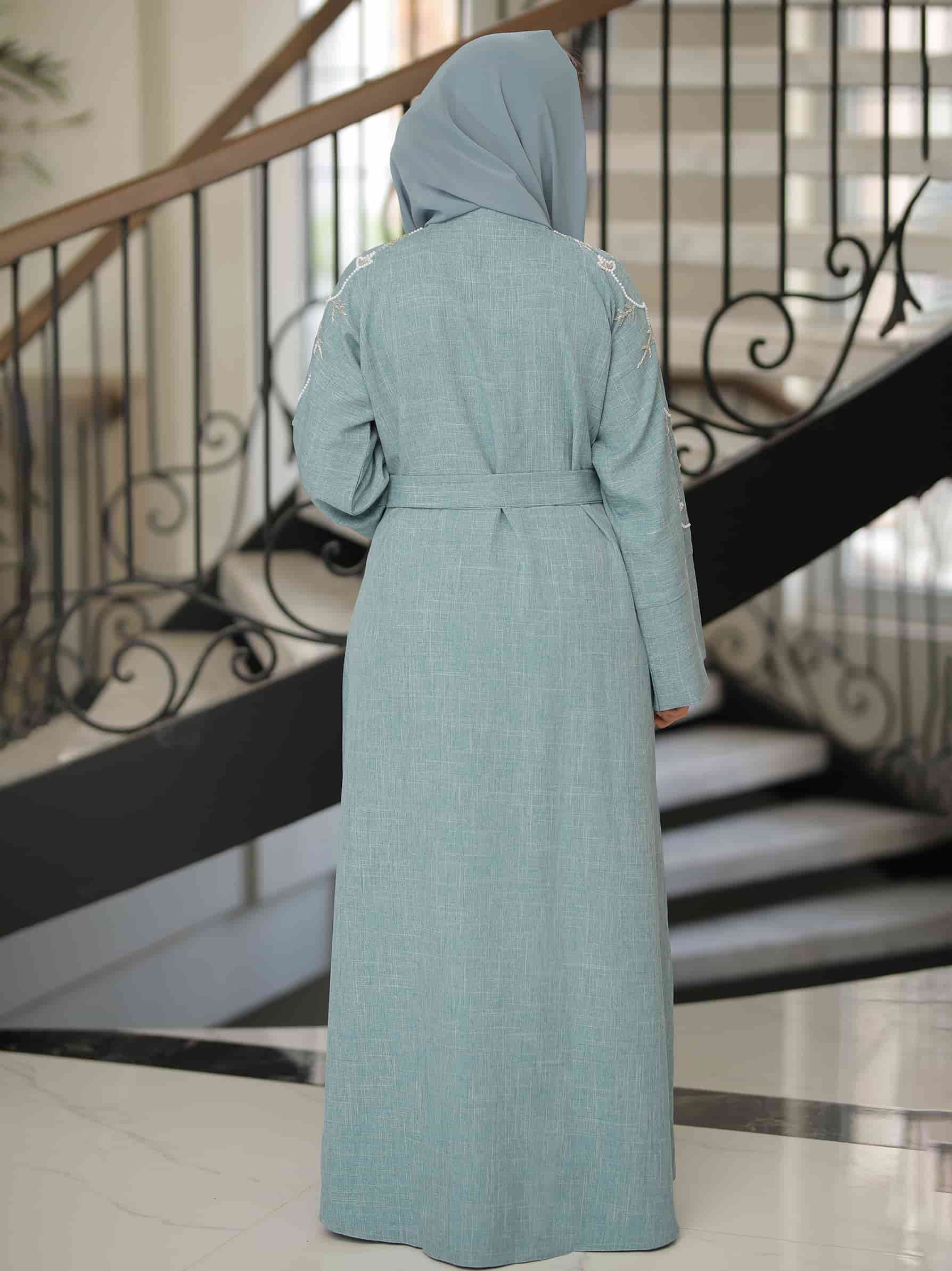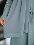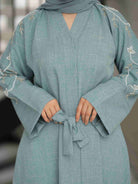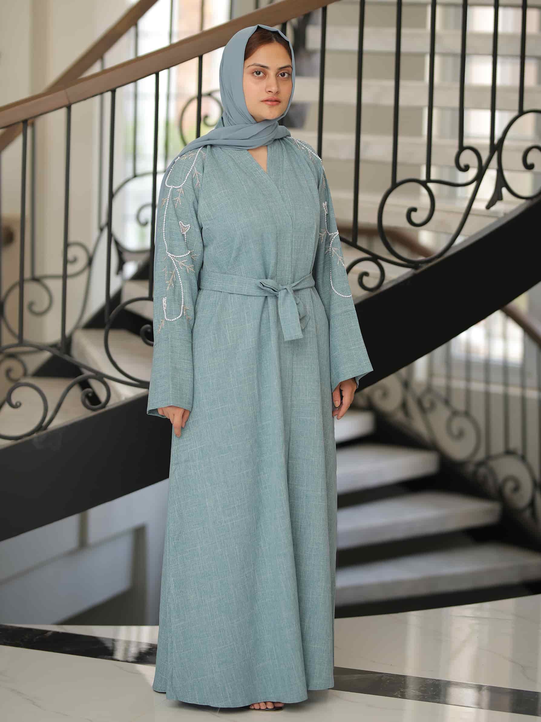 Blue Linen Embellished Sleeves 2 Piece Abaya