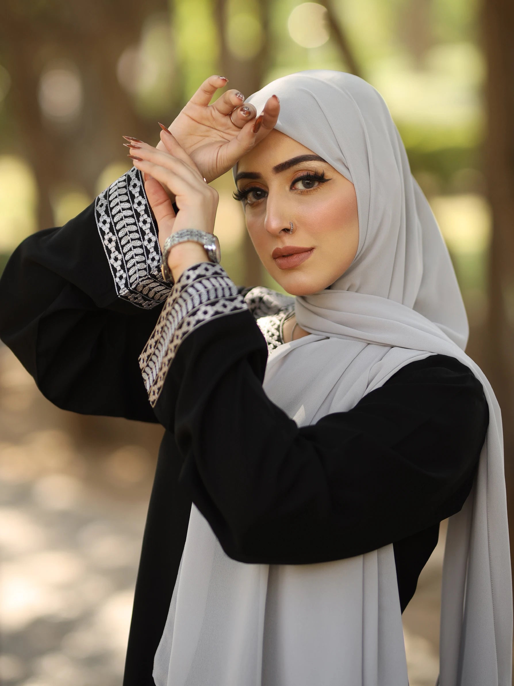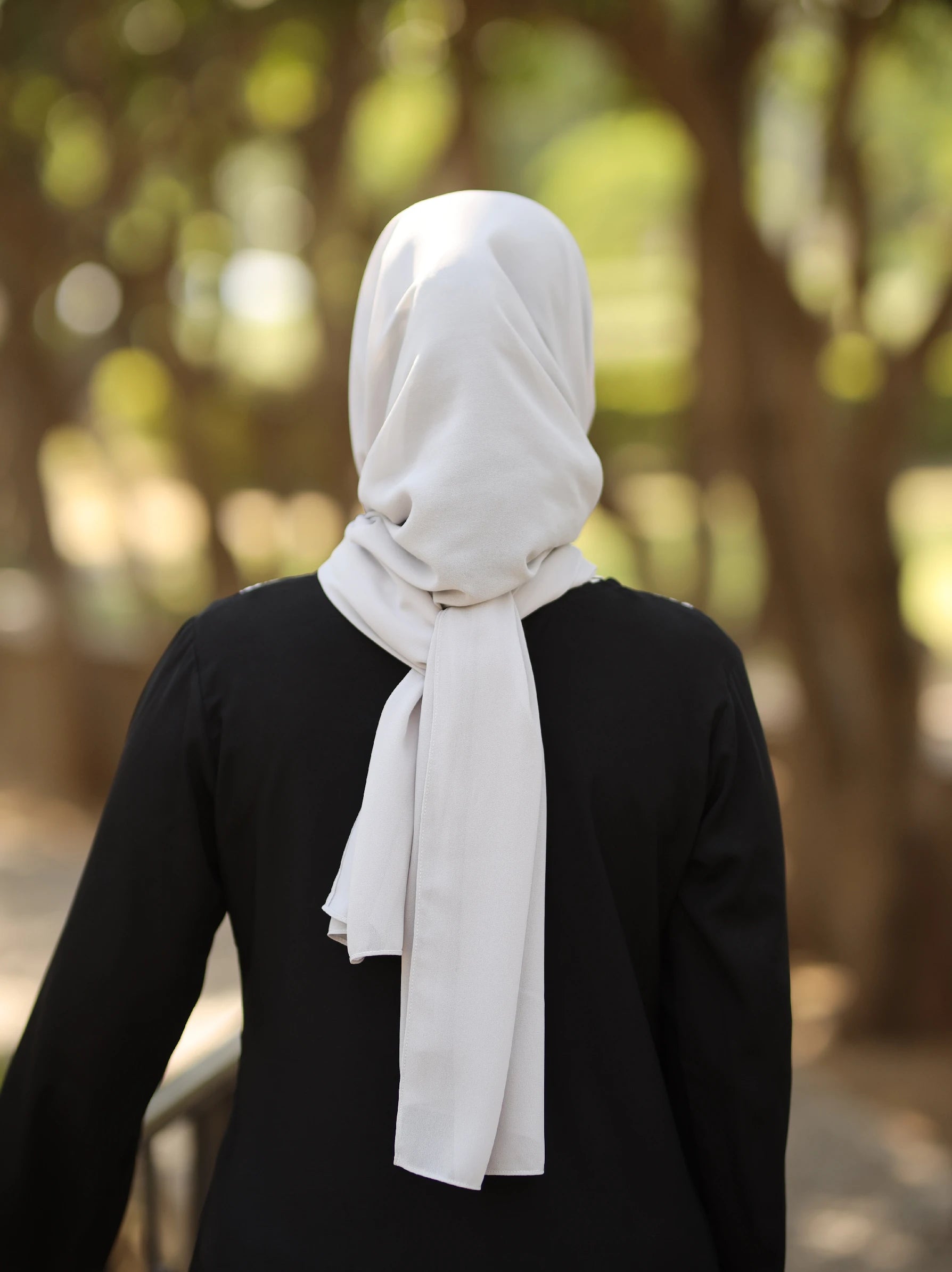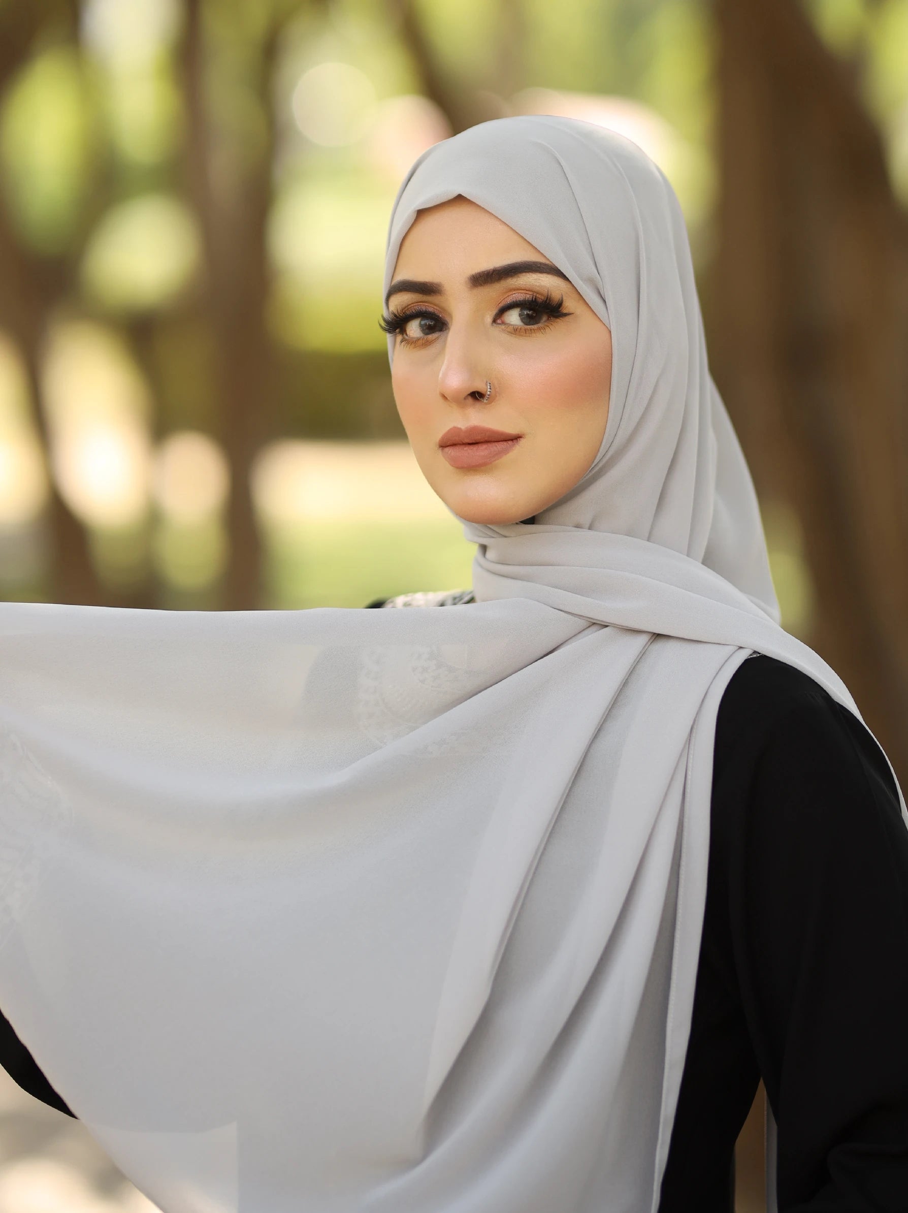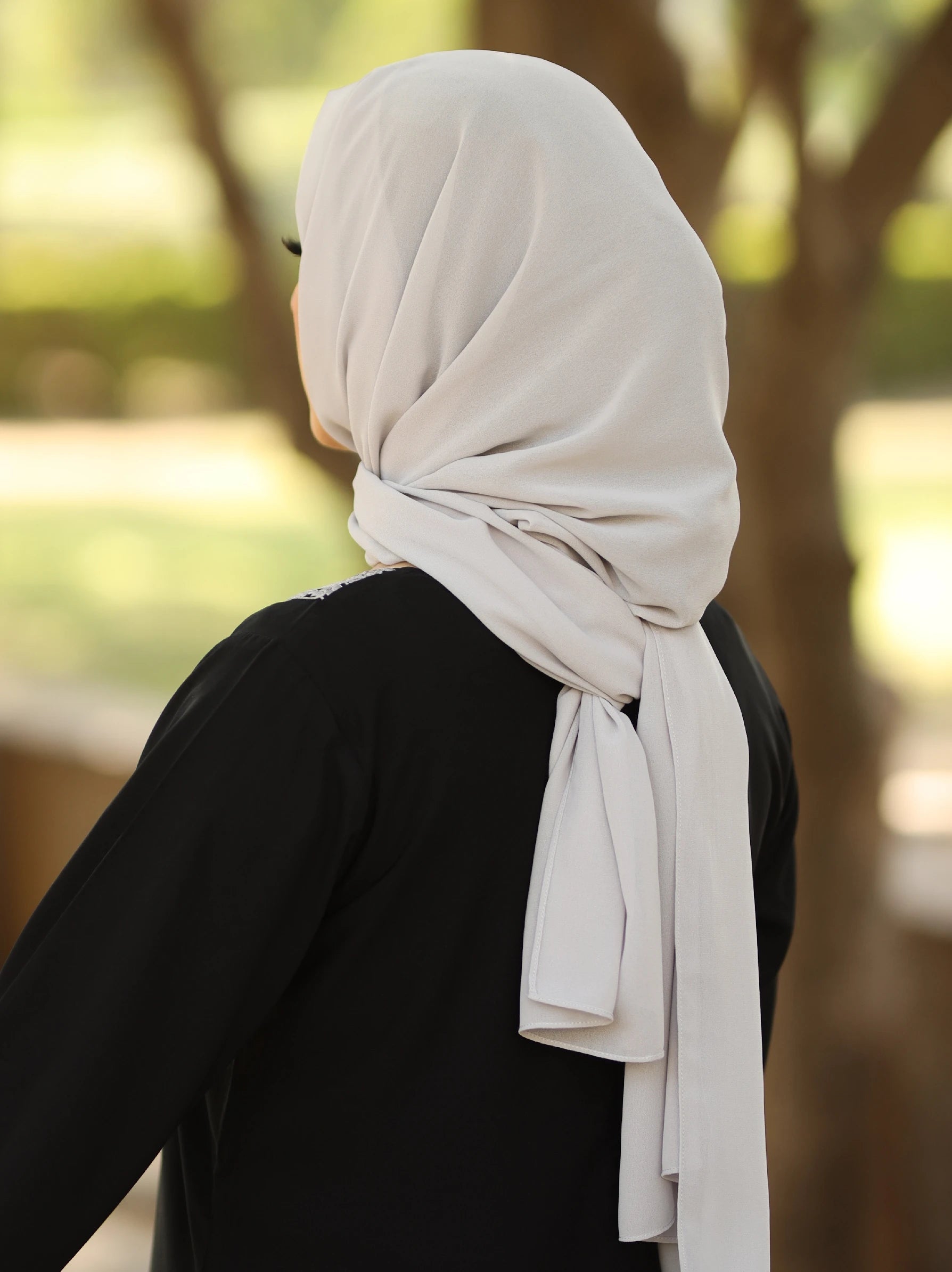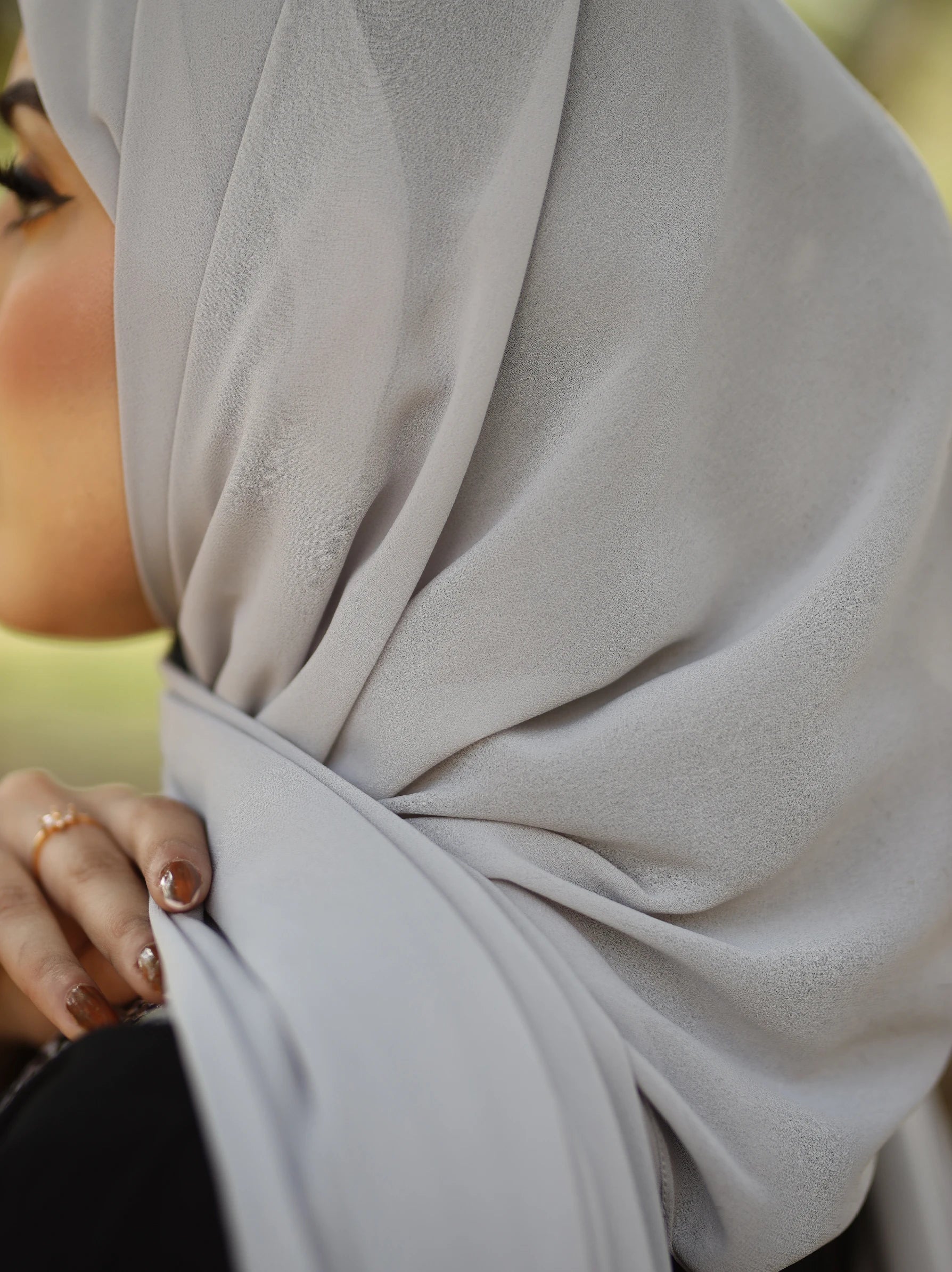 Our beautiful grey crepe chiffon scarf is perfect for any occasion! Featuring a lightweight and airy crepe chiffon fabric, the hijab offers fashionable coverage while providing breathability and comfort. Its slightly sheer design creates an elegant drape when wrapped around the head. Additionally, this hijab features a beautiful finish along the edges that adds a touch of sophistication. The scarf is also easy to tie and style to match any outfit. Bring a dash of grace to your wardrobe with this stunning grey crepe chiffon hijab!