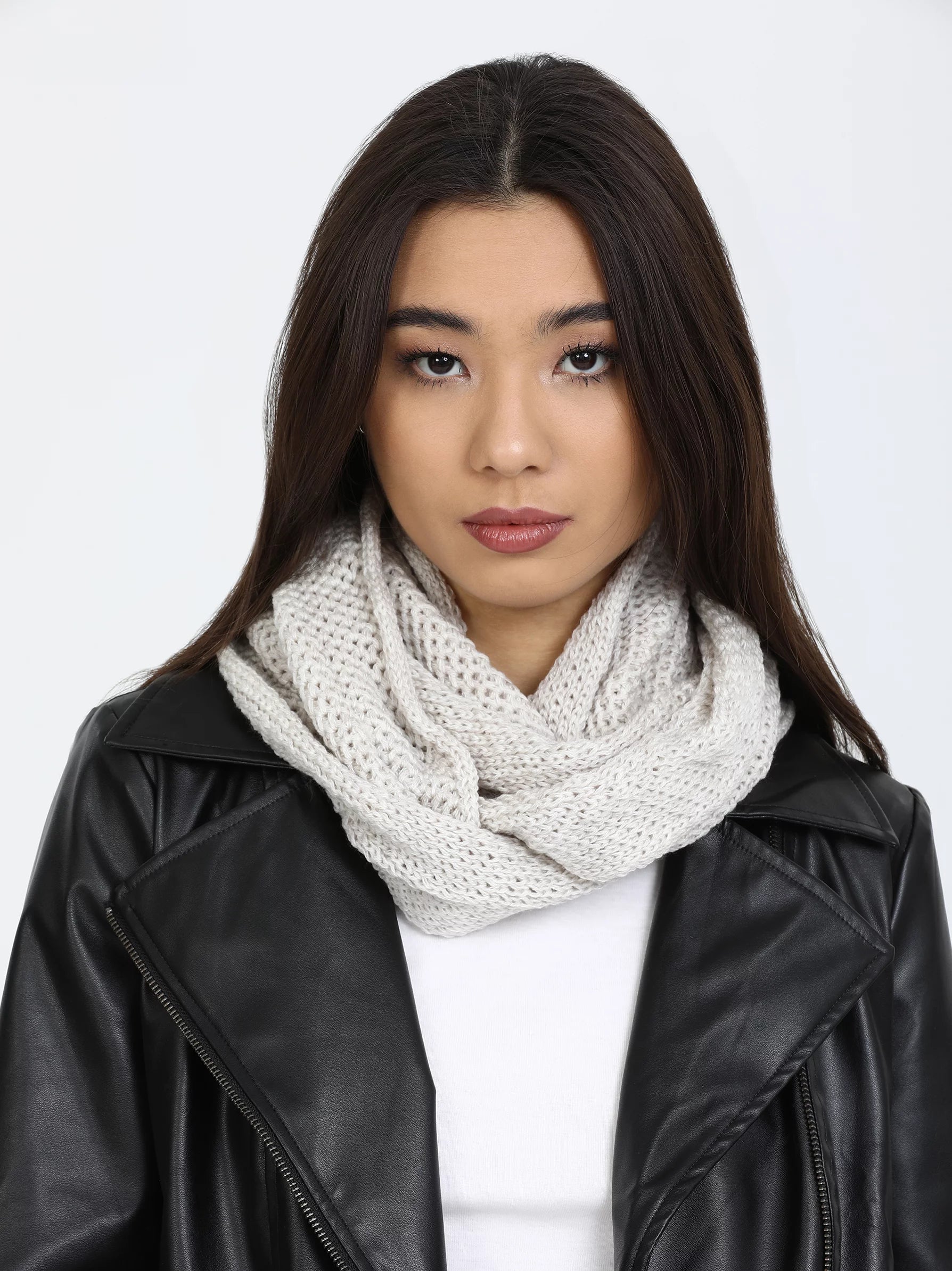 Wrap up in style and stay warm this season with our cream knitted snood, t a versatile accessory. Pleasant to touch, provides a warm comfortable and cosy feeling.