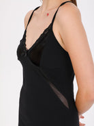 Black Tulle and Lace Detailed Cotton Chemise