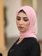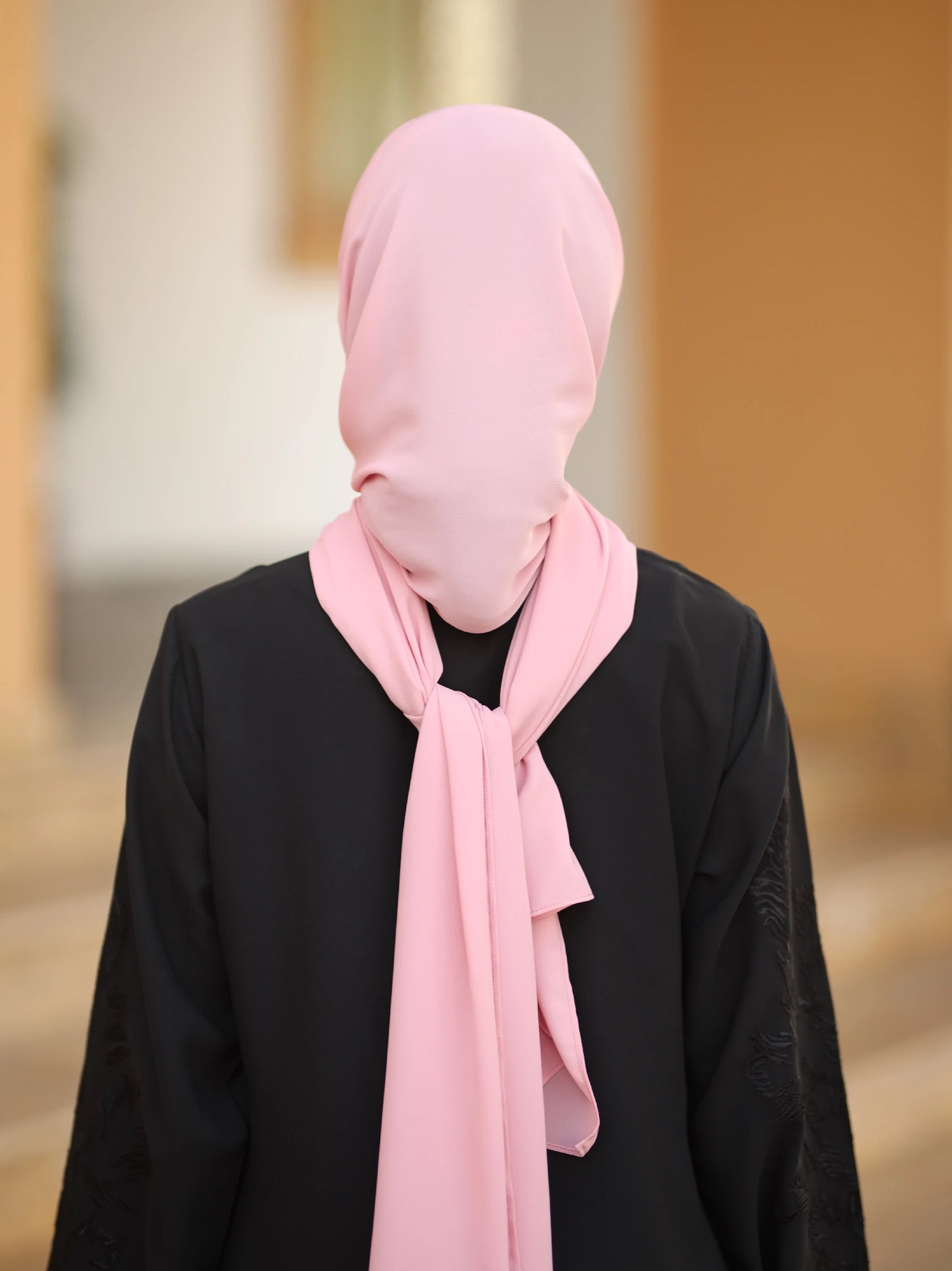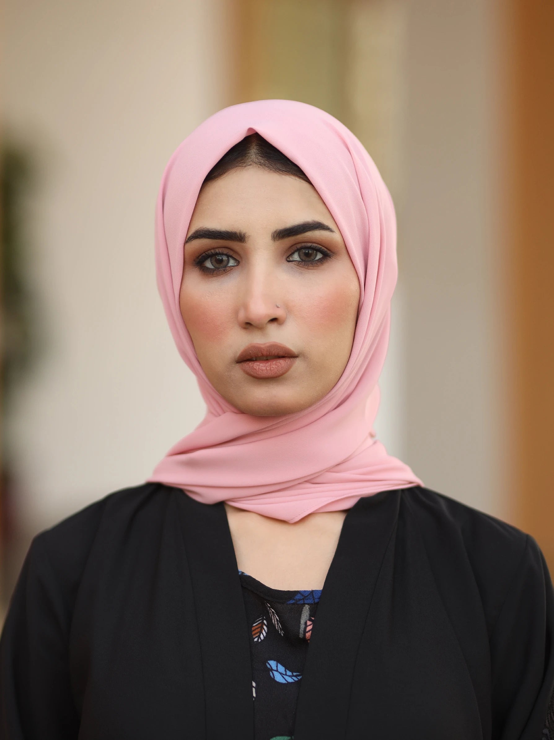 This opaque pink chiffon scarf is perfect for keeping your head and neck warm during cooler days. It is made of a chiffon fabric, and is lightly opaque for extra coverage. The delicate material is lightweight, making it easy to style in a variety of ways. It is finished with an all-around hem for a clean, sophisticated look. Whether you’re styling your look for a special occasion or just for everyday wear, this pink chiffon hijab will add a touch of grace and warmth to your outfit.