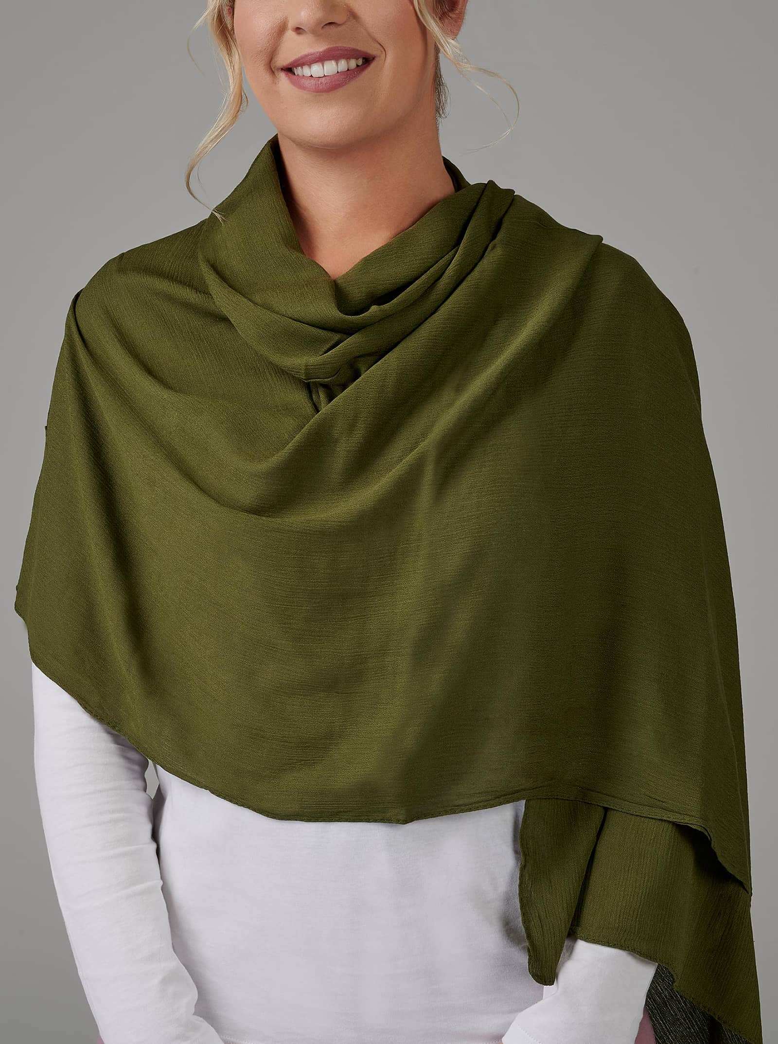 A khaki rayon scarf is perfect for upgrading your daily chic styles. It's soft and lightweight, with a rectangle shape and clean-cut edges. Check our lovely selection of safe pins and magnets to use together.