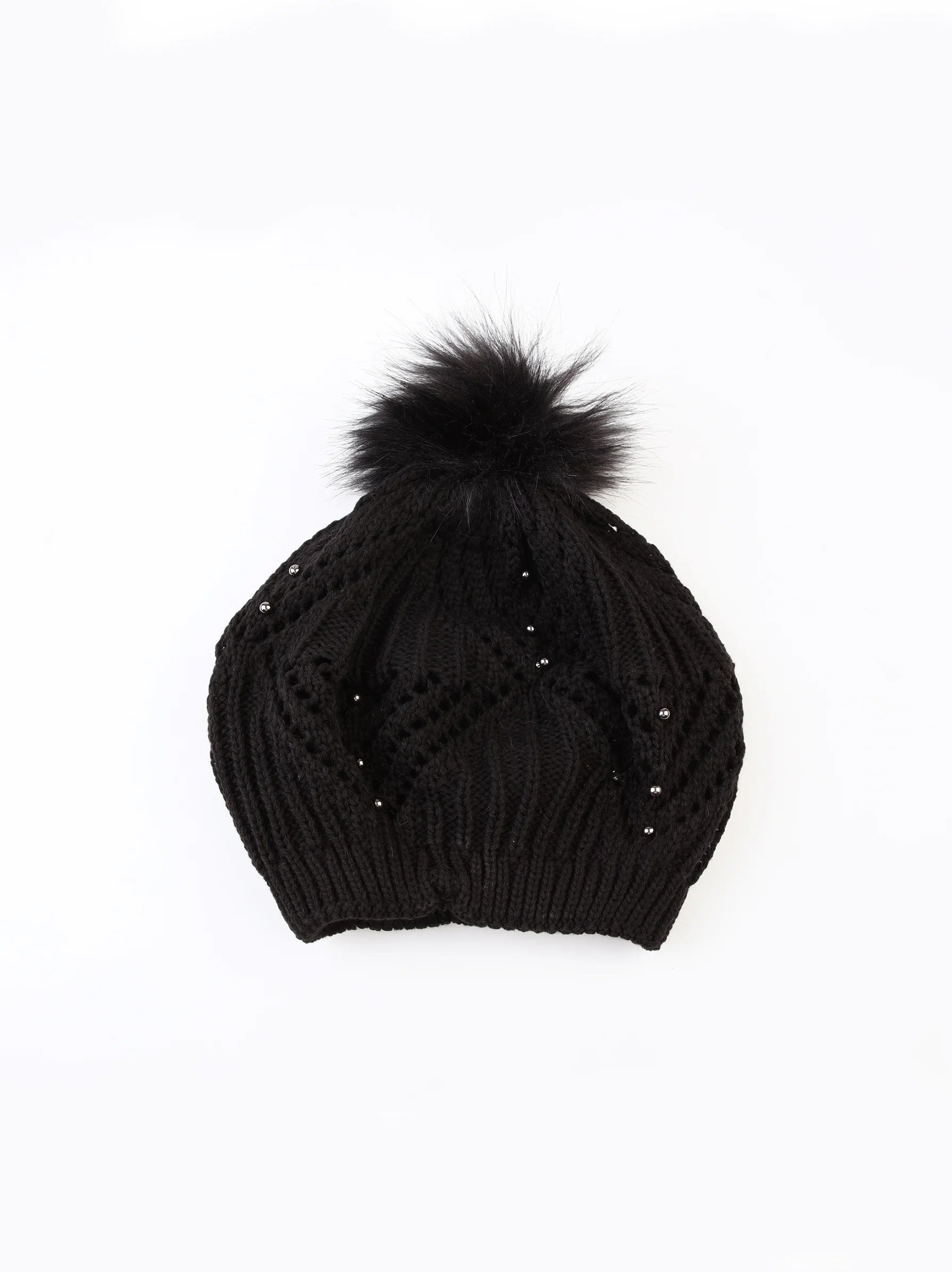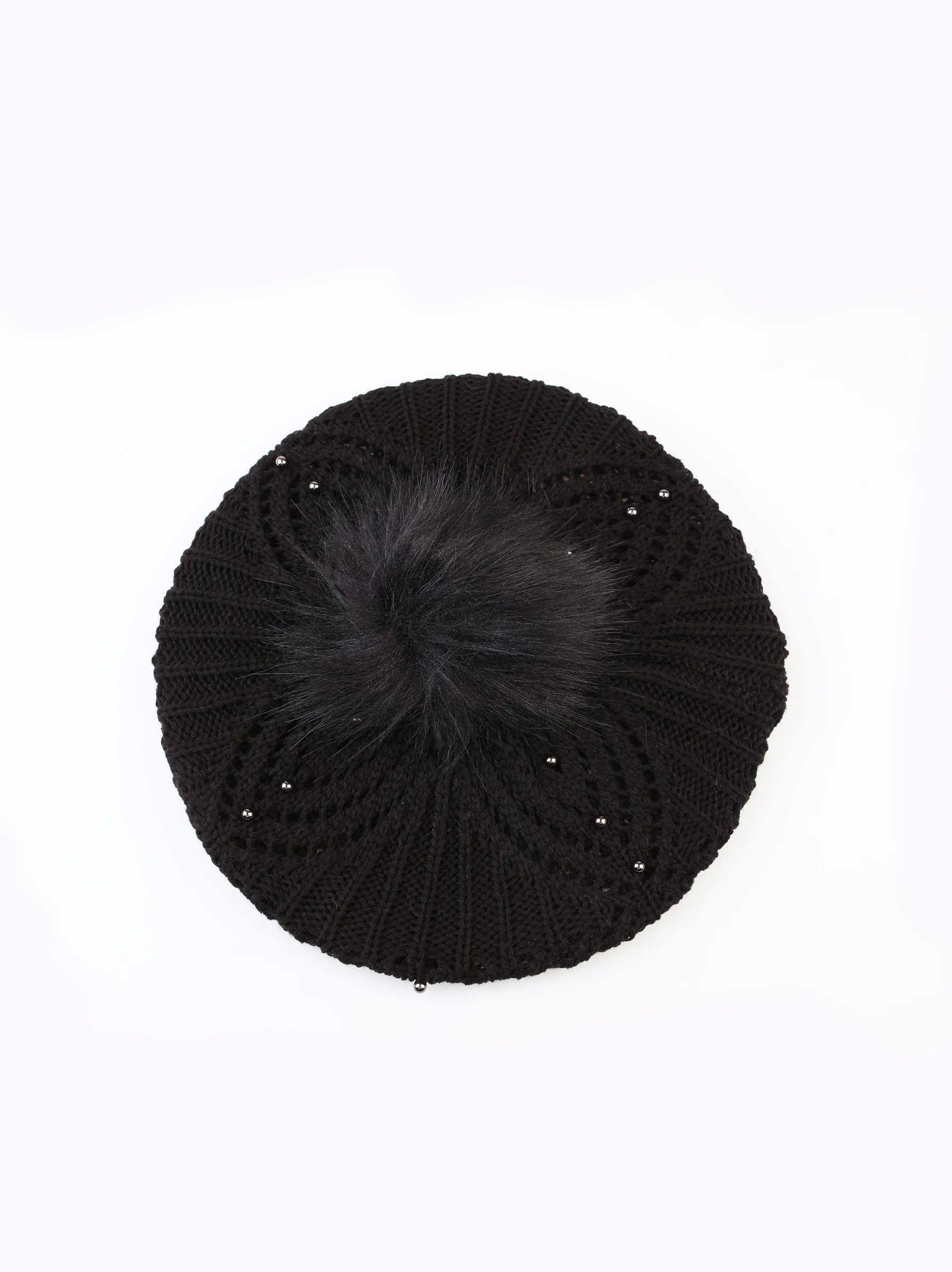 Discover the perfect finishing touch for any outfit this winter. Stay warm and trendy with this musthave winter essential. This bead embellished black pom beret hat, can go with anything and everything in your closet while keeping your head warm and fashionable.