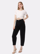 Five-pocket, ankle length jeans in washed denim with extra high waist and relaxing pleats at waist that will be your most comfy jeans at your wardrobe with the loose Balloon fit. This versatile model you can wear for all occasions pairing with t-shirts and sneakers or chic blouses and heels.