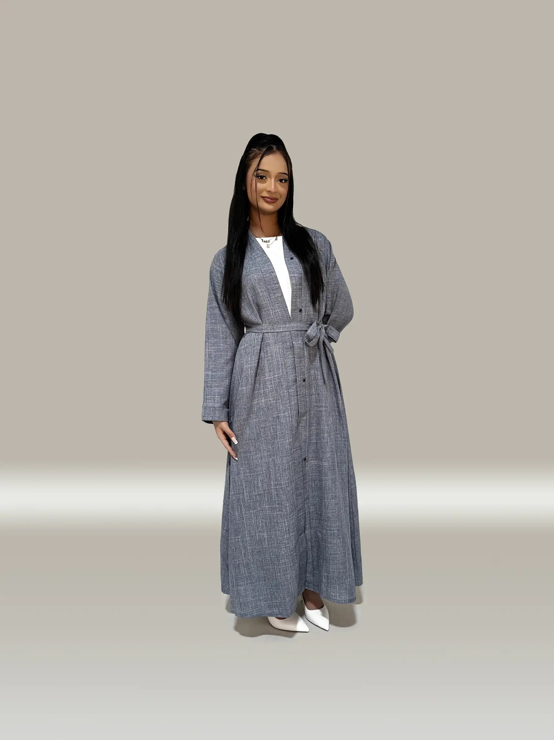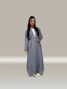 Introducing our Grey Open Abaya 2-piece set, a sophisticated addition to your modest wardrobe that exudes elegance and versatility. Crafted from premium quality Milans fabric, this ensemble offers both comfort and style, ensuring you look and feel your best on any occasion.