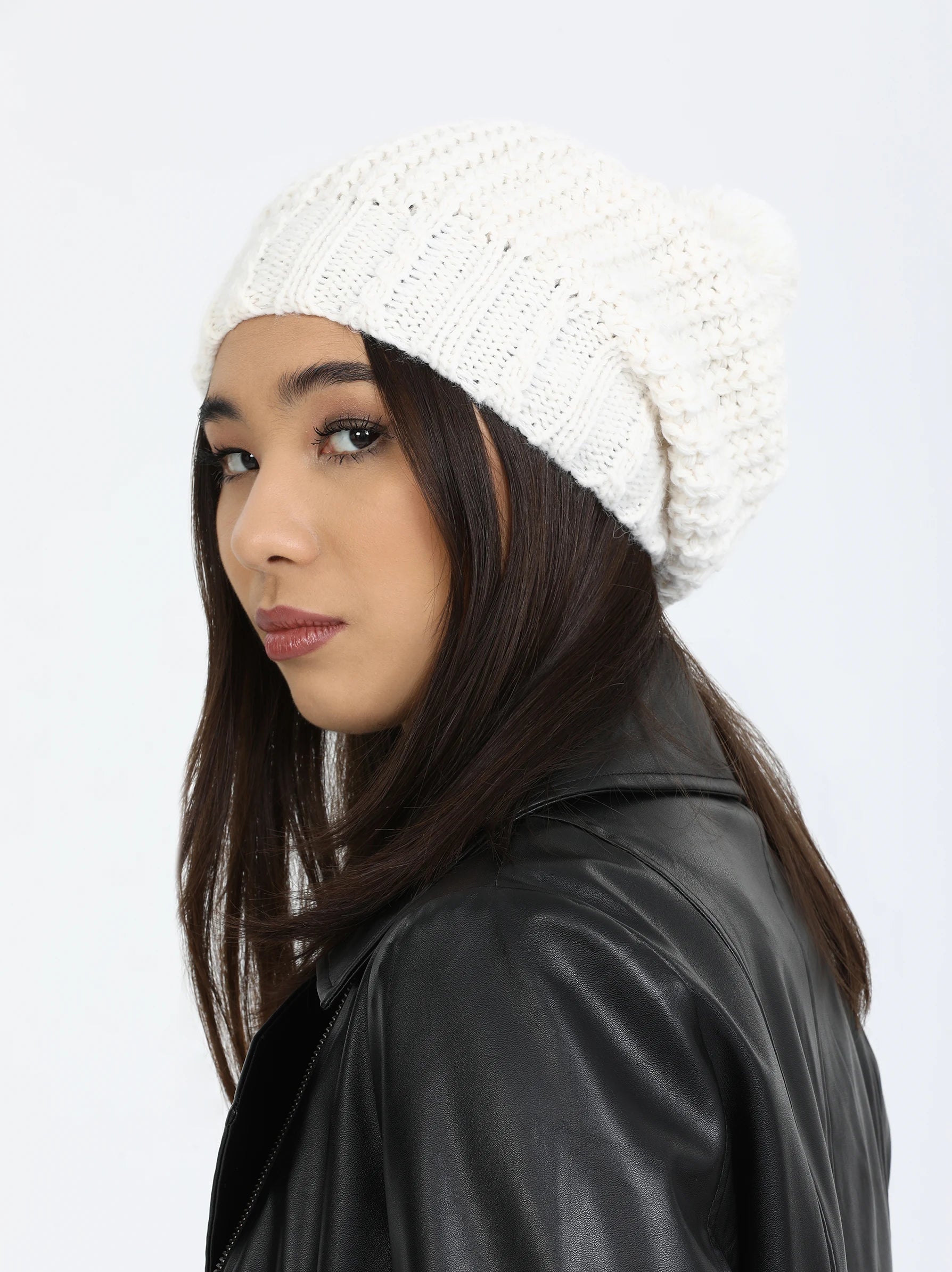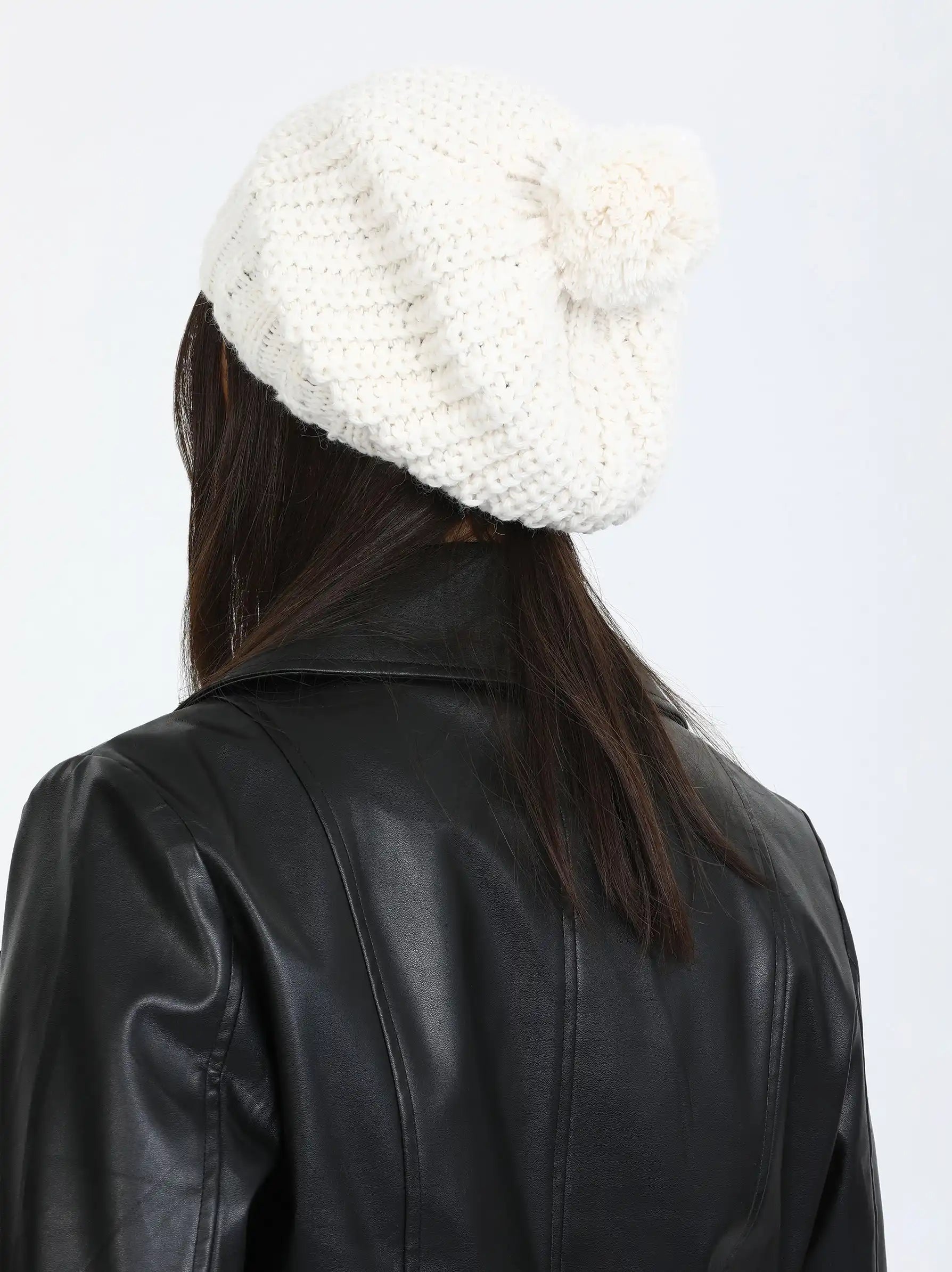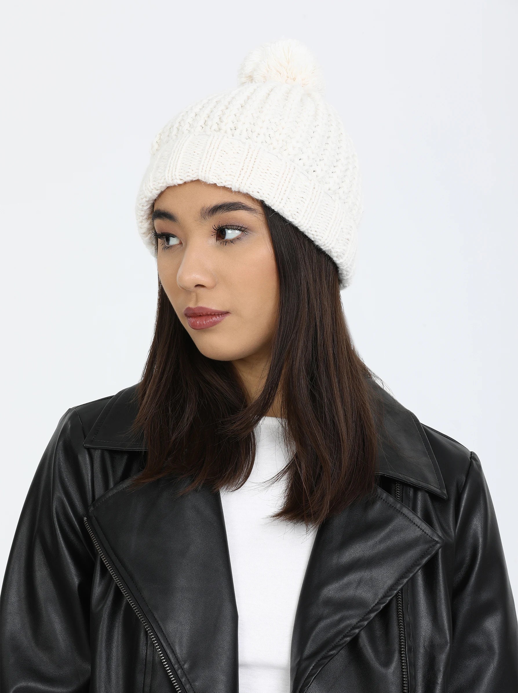 A off white beanie hat is not just about keeping yourself warm but also about being on trend. This rib knit pom beanie hat features a matching pom pom for a festive touch, soft fabric and a turn-up option brim makes this winter hat a must-have accessory that meets the requirement.
